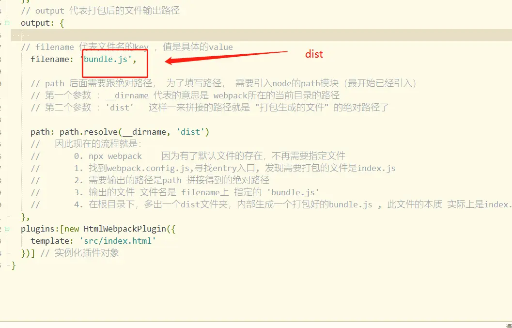 OutPut:{output: filename: 'bundle.js', path: path.resolve(__dirname, 'dist')}