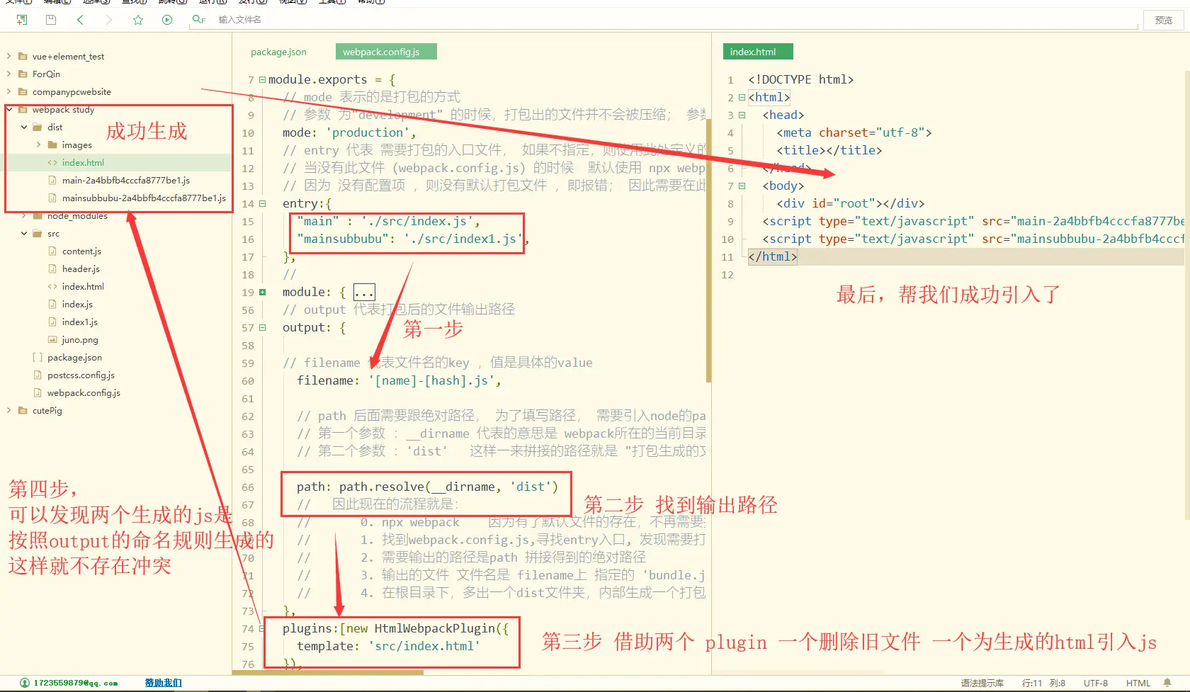 🙃在我们实际工作中,很多时候是需要打包多个js文件的,因此在entry中,我们需要这样写: