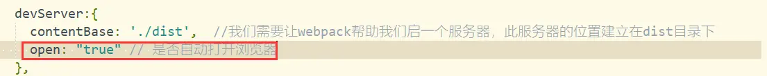 devServer:{ contentBase: './dist' },//我们需要让webpack帮助我们启一个服务器,此服务器的位置建立在dist目录下, -