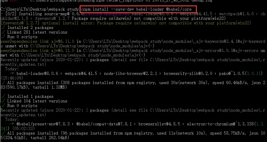 cnpm uni babel-core babel-loader babel-plugin-transform-runtime -D - 执行新的安装