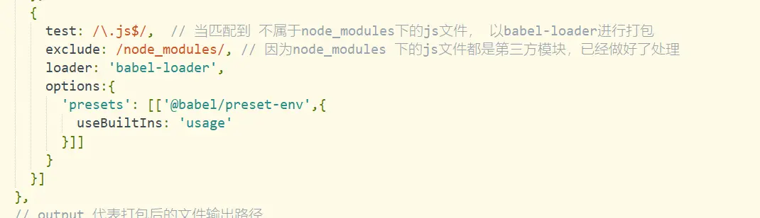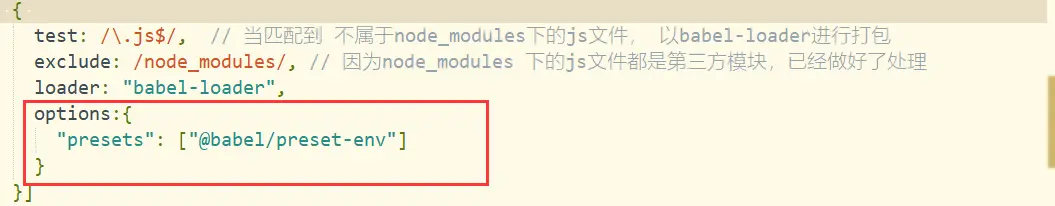 test: /\.js$/, // 当匹配到 不属于node_modules下的js文件, 以babel-loader进行打包