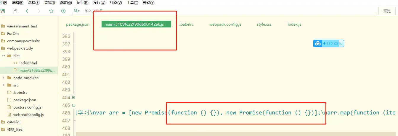 最后 npx webpack 打包终于不报错了,来看一下打包生成的文件:
