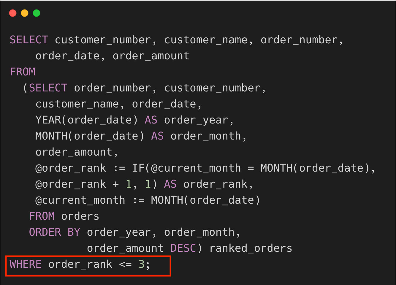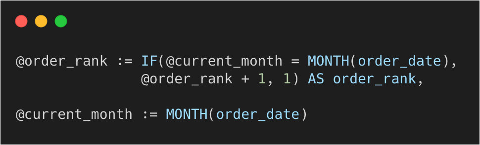 @current_month和@order_rank 是我们自定义的变量。