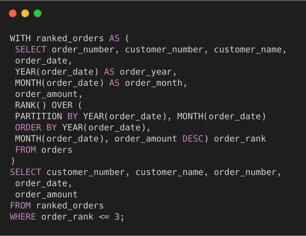 查询出每月 order_amount(订单金额) 排行前3的记录。