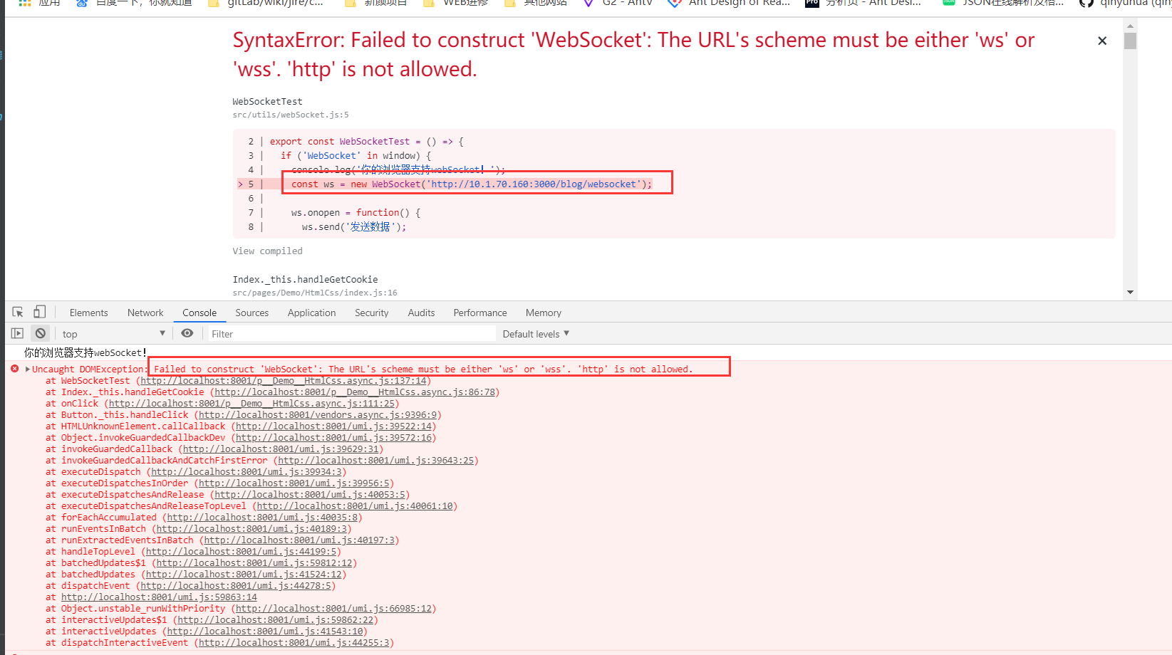 // 意思是要使用 ws或wss协议,不能使用 http, 原因在 js 中没有写协议导致,