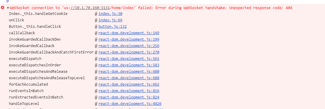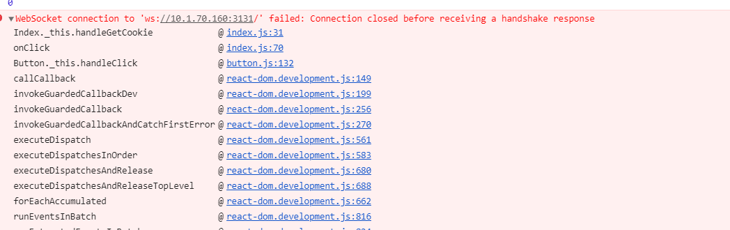 5. index.js:31 WebSocket connection to 'ws://10.1.70.160:3131/' failed: Connection closed before receiving a handshake response