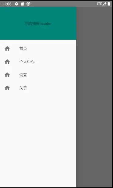 可以看到我们的抽屉还没有任何内容,但是已经可以正常的显示了。