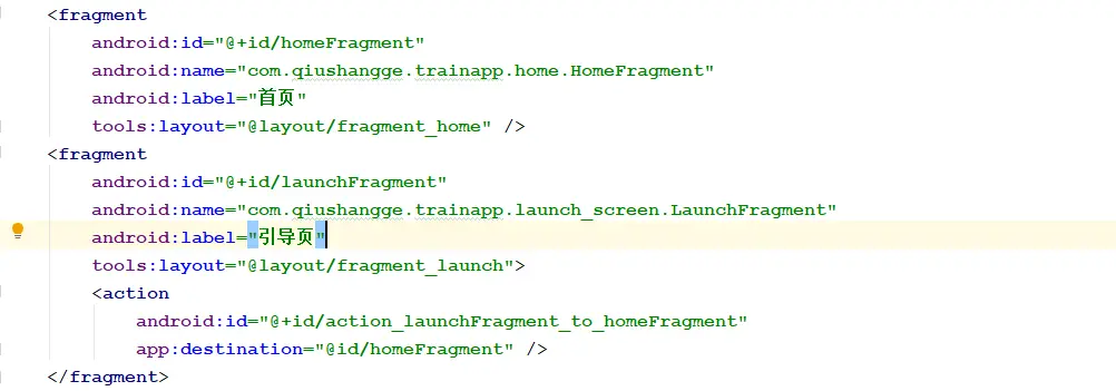 AppBarConfiguration对象来管理应用程序显示区域左上角的“导航”按钮的行为。默认情况下,当用户位于导航图的顶级目标位置时,“导航”按钮处于隐藏状态,而在其他任何目标位置均显示为“向上”按钮。单击导航图标时,此方法将调用NavController.navigateUp。使用工具栏时,“导航”会自动处理“导航”按钮的单击事件,因此我们无需覆盖onSupportNavigateUp方法,此时在Home Fragment中点击返回键,那么将回退到LaunchFragment。