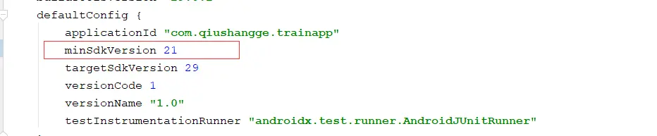 可以看到状态栏的颜色和toolbar的颜色不一致,这里为了偷懒,更多的方式网上有好多的教程。设置最低版本号为21: