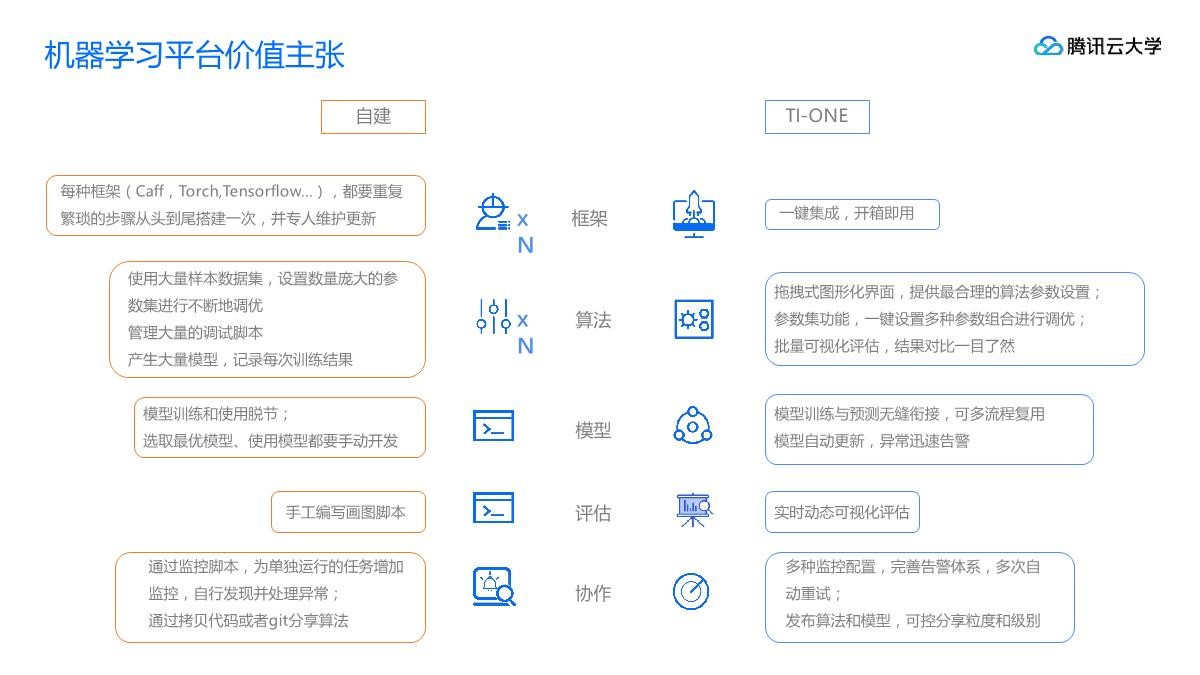 对于智能钛TI-ONE,我们已经将框架集成到平台,并且调试好了,提供的是平台级的算法建模服务,“开箱即用”。
