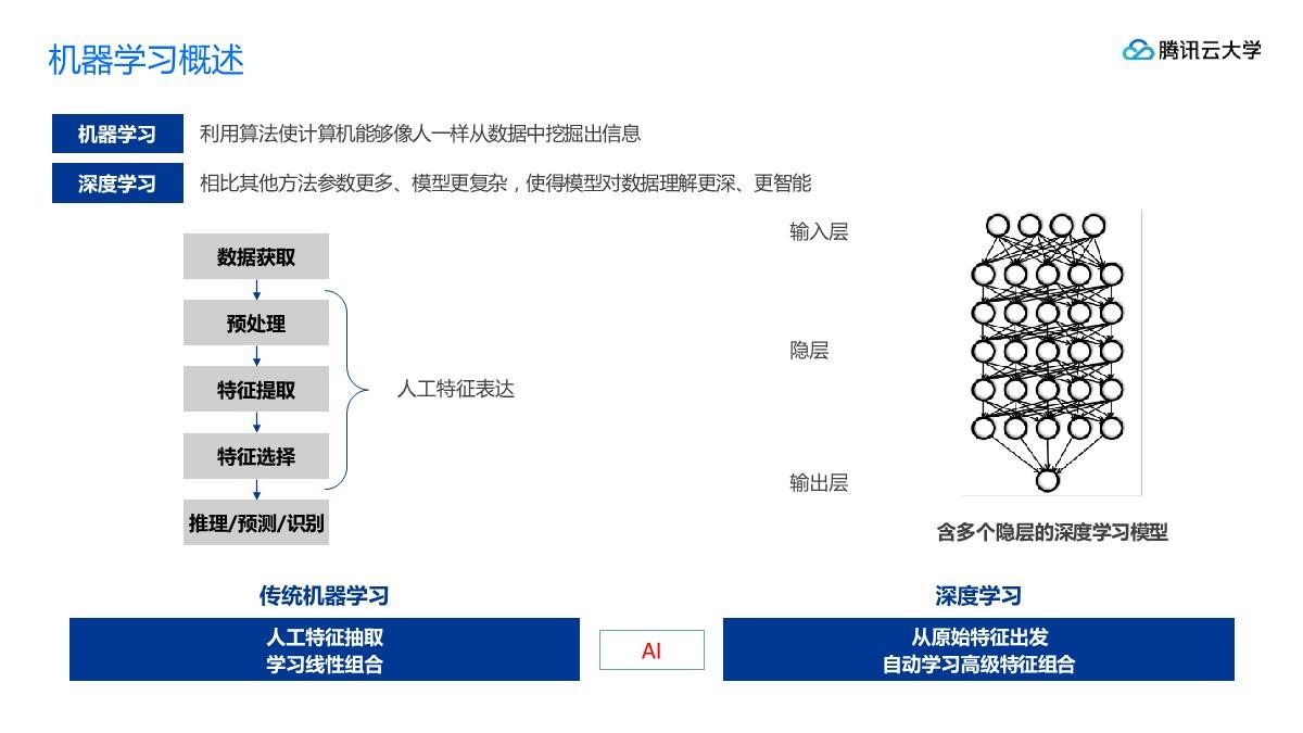 今天我们课程所说的机器学习,指的是广义的机器学习,包括了传统机器学习和深度学习。