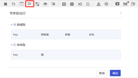 支持参数设定,提供数值型、枚举型的参数运行设置。
