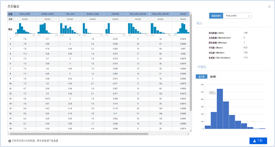 支持中间结果预览,可以查看工作流中间节点的数据输出情况是否符合您的预期,做到建模时心中有数。