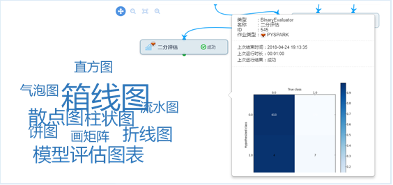 丰富多样的图表展现形式;多种模型评估方式;图表悬浮即可呈现。