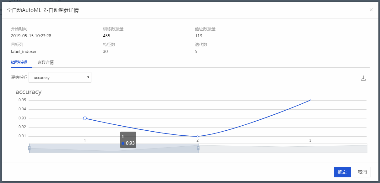 支持历史实例的详情查看,模型对比,续跑。