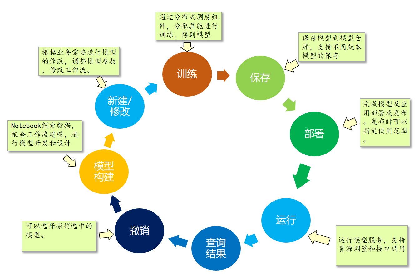 生成的模型好不好,需要有方法去评估,好的模型要生成离线或在线的服务进入到实际的应用,整个过程需要大量的计算资源支持。