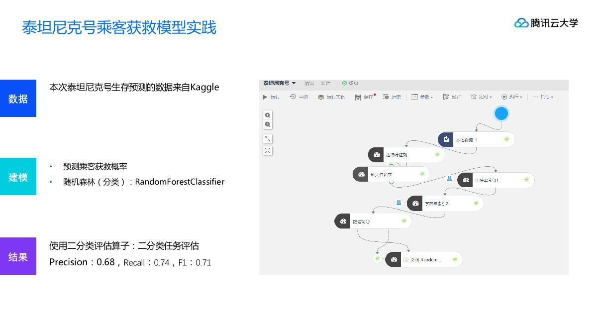 1998年欣赏过好莱坞巨片《泰坦尼克号》,影片震撼的效果、唯美的画面和男女主人公凄美的爱情,曾一度引发青春的骚动。时隔多年,做为一个数据分析的入门学习者,从数据分析的角度来看待这场灾难,是否会有新的感触? 在灾难发生时,由于没有足够的救生艇给乘客和船员,能幸存下来的人是有一定的运气因素,但仍然可能是一些人比其他人更有可能生存。那么是什么样的人更可能在这场灾难中存活下来?存活下来的人都有哪些特性?这些特性在其他灾难现场是否也有助于生存?将以泰坦尼克号沉船事件为背景,利用乘客的多维度数据搭建模型,判断泰坦尼克号沉船事件中该乘客是否可以获救。您根据后续每个步骤进行演练,即可体验在 TI-ONE 控制台建立并成功运行工作流的全过程。