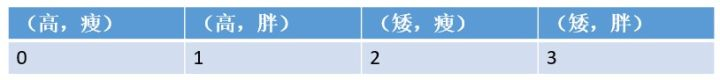 可以数字化为二维的特征(1,1),接着往高一层抽象我们描述这个人可以说成高挑,通过这个映射: