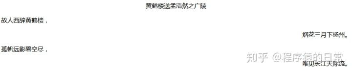 <p>孤帆远影碧空尽,</p><p align="right">唯见长江天际流。</p>效果: