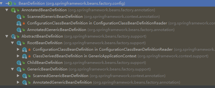 在配置文件中可以定义父和子,父用 RootBeanDefinition 表示,而子用 ChildBeanDefinition 表示,而没有父的就使用 RootBeanDefinition 表示。AbstractBeanDefinition 对两者共同的类信息进行抽象。
