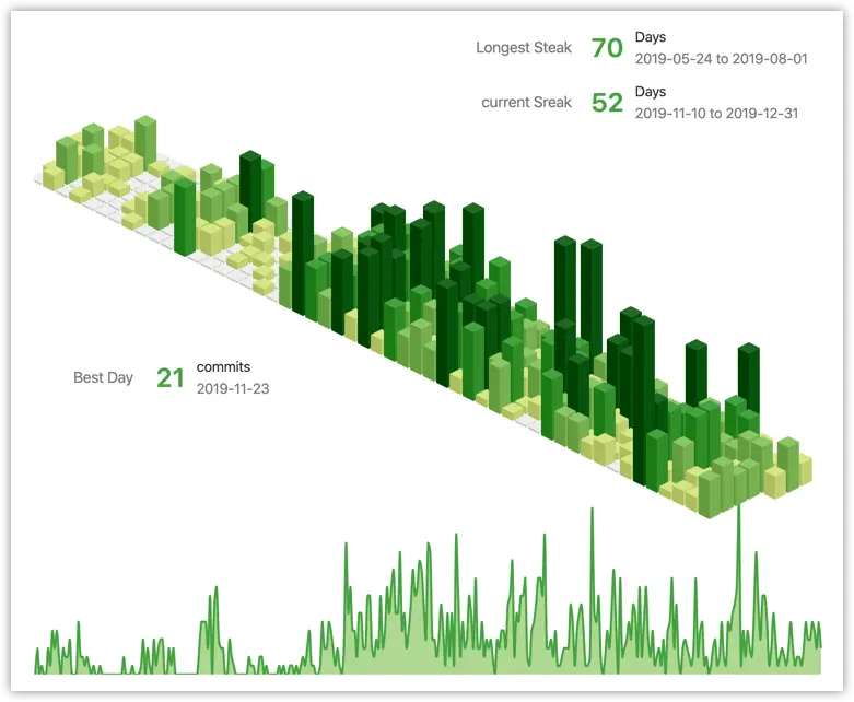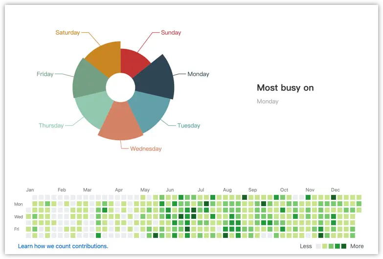 相比去年,代码量翻了2倍多,共1385次提交。从 contributions 中就可以看出,今年是疯狂 coding 的一年。按时间排序,一共产出了以下几个项目。