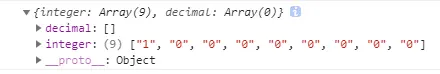 console.log({ integer, decimal });