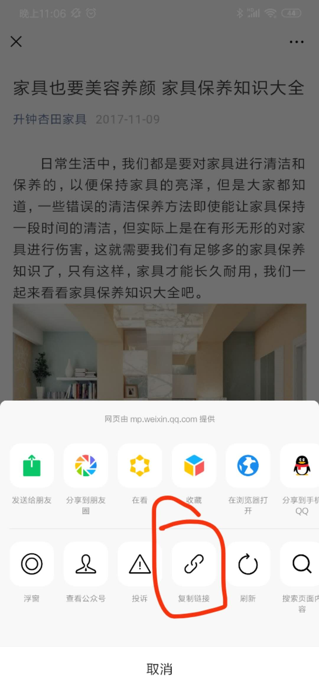- 截图文章右上角“微信扫一扫关注该公众号”二维码并解析获取到链接(如若不知道如何解析二维码,可直接百度二维码解析)