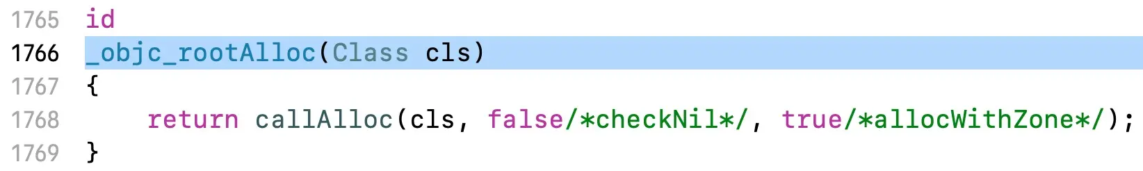 callAlloc(Class cls, bool checkNil, bool allocWithZone=false)