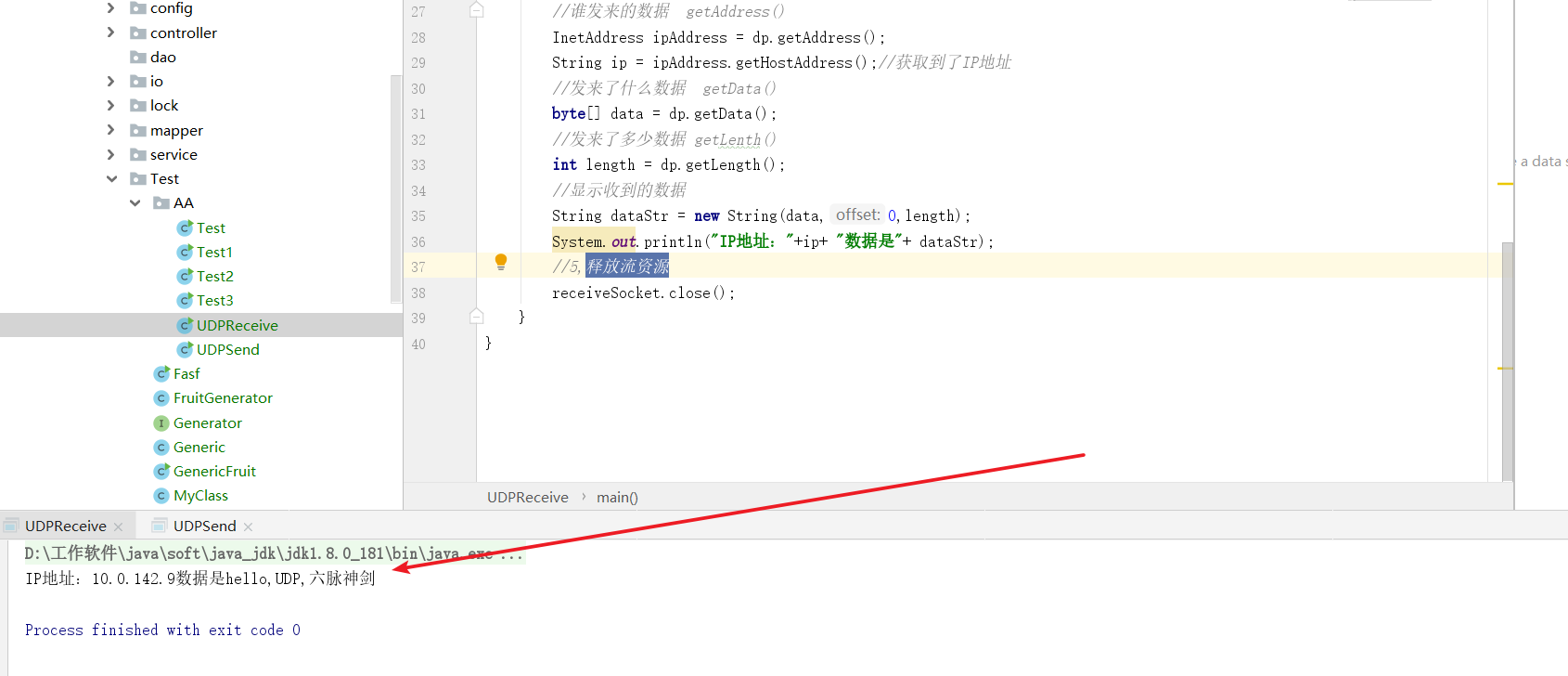 1,创建DatagramSocket对象 2,创建DatagramPacket对象 3,接收数据存储到DatagramPacket对象中 4,获取DatagramPacket对象的内容 5,释放流资源 -