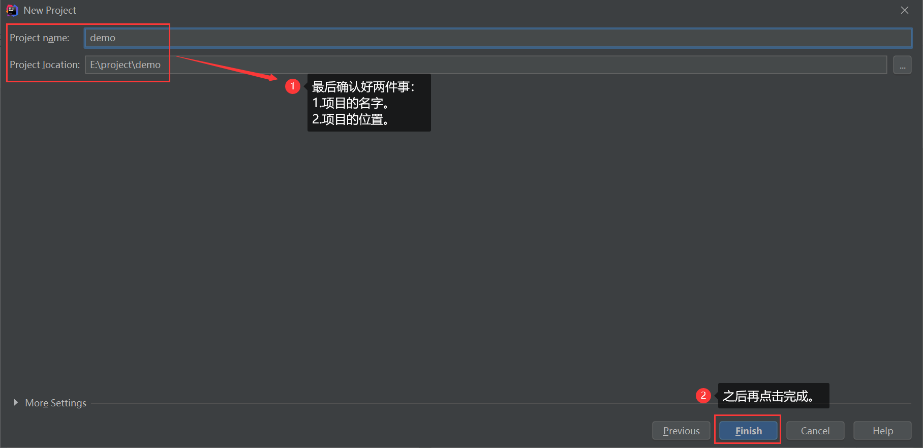 - 确认好项目的名字,位置。