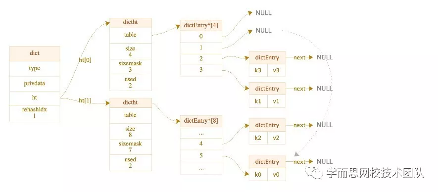 字典和哈希表的结构图如下: