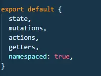 我们vuex中的store是分模块进行管理的,刚刚在store的index.js中引入了各个模块,为了解决不同模块命名冲突的问题,所以将不同模块的namespaced:true,之后在不同页面中引入getter、actions、mutations时,需要加上所属的模块名。