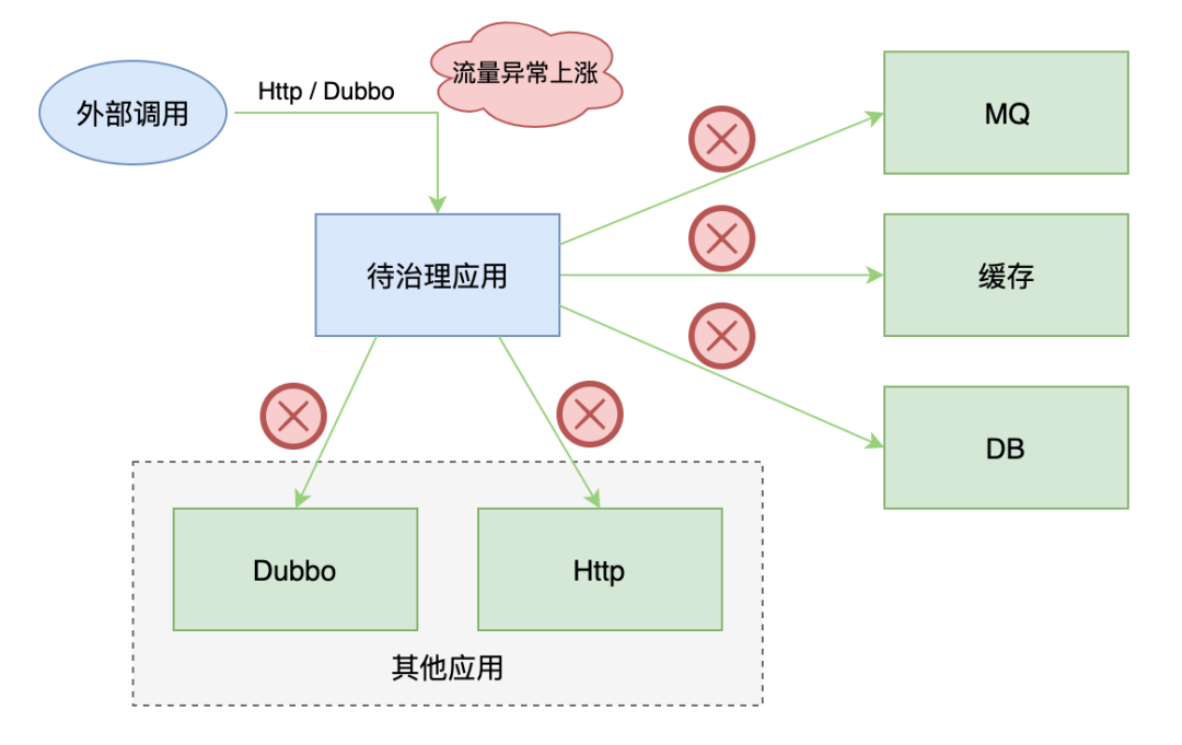本篇文章重点讲述对系统间依赖的治理,主要包括系统依赖的外部组件、依赖的外部接口、对外提供的接口,比如 Dubbo、Http、DB、MQ 等。