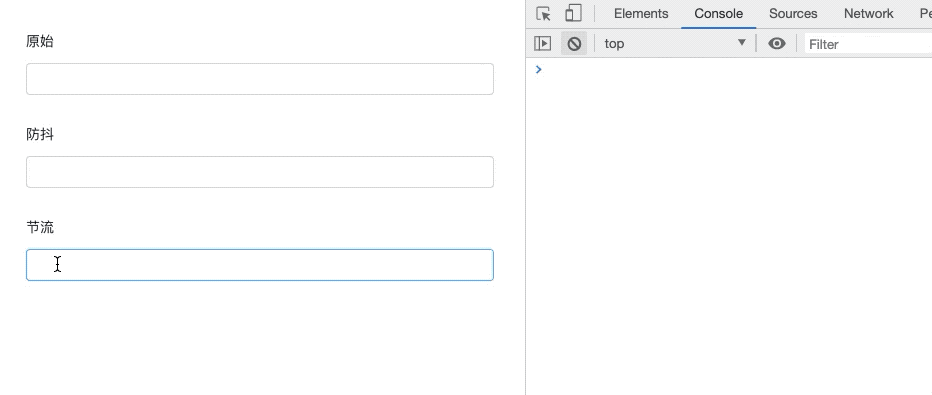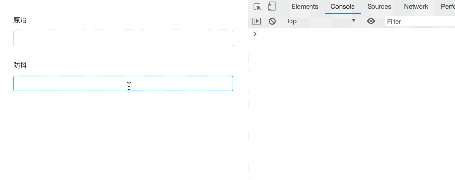 对上面的输入框监听键盘事件进行防抖处理,结果运行如下: