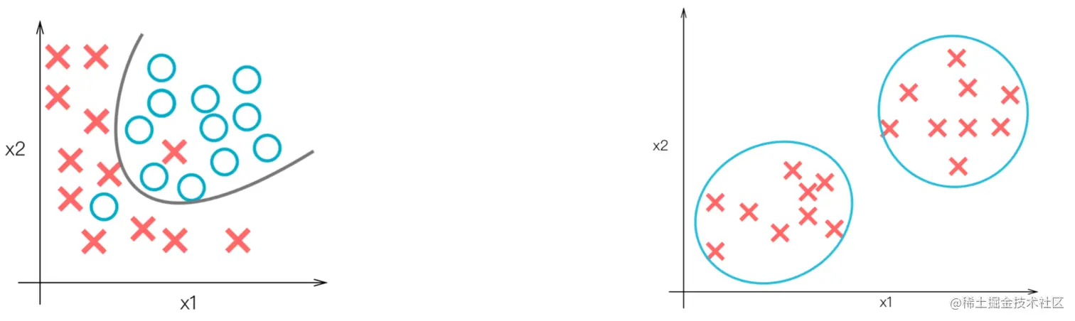 我们上面举的例子其实都是有标签的数据集,但有的时候数据集并没有标签。根据数据集是否有标签可以分为有监督学习和无监督学习。
