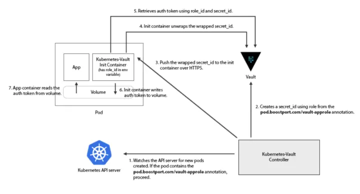 当然在pod应用中可以并不局限于一定使用基于sa的kubernetes认证方式。比如[kubernetes-vault]( github.com/Boostport/k…