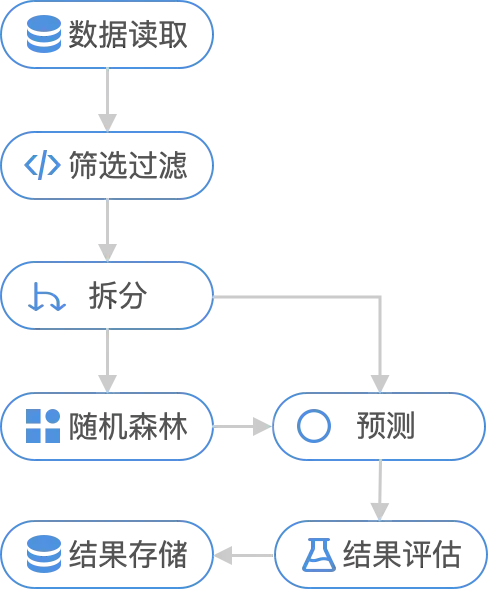 XGBoost 通过 Boosting 的方法提升树的“准确率”,相较于随机森林算法在我们的数据集上表现更优越。但是算法平台的 XGBoost 模型有许多流程不标准的地方,因此为了实现自动化链路,我们搭建了如图所示模型。