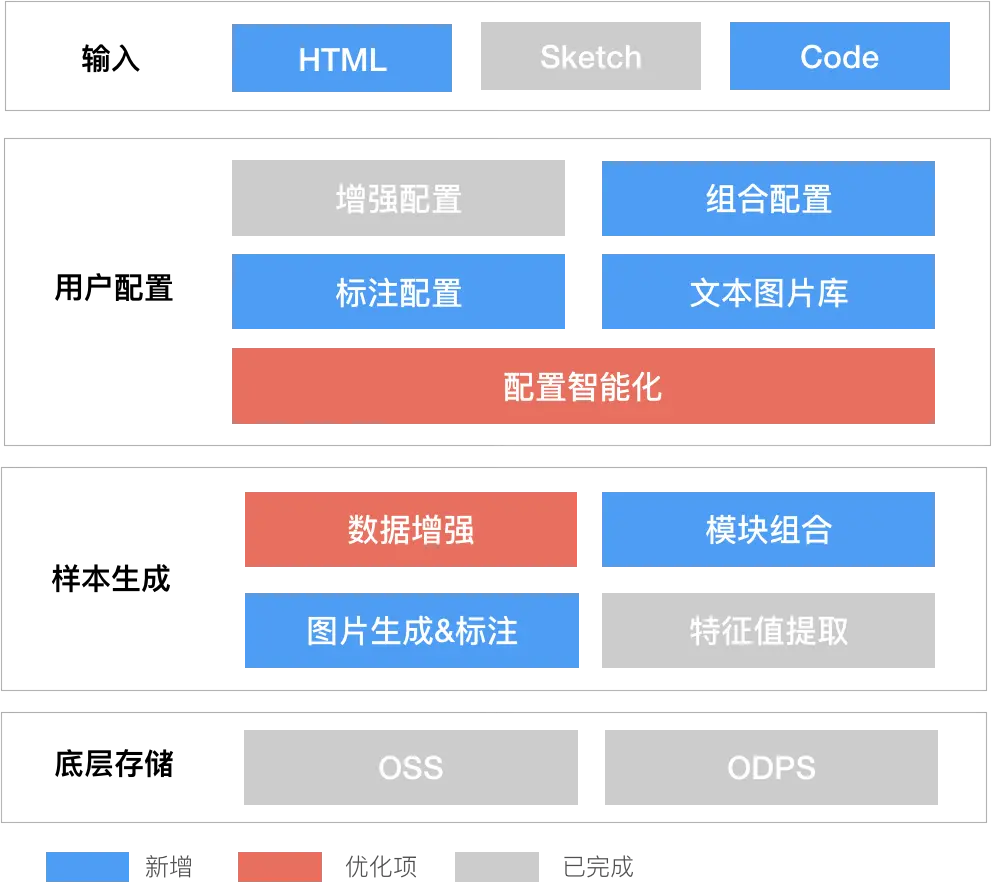 **来源扩展:**目前我们的样本生成链路是从 Sketch 到 ODPS 表格数据,在后续的业务场景中我们还希望能支持从 HTML、前端代码生成样本。不论何种来源,在数据增强这一层都会有许多相通之处,我们将抽象出通用的增强算法服务,开放调用。