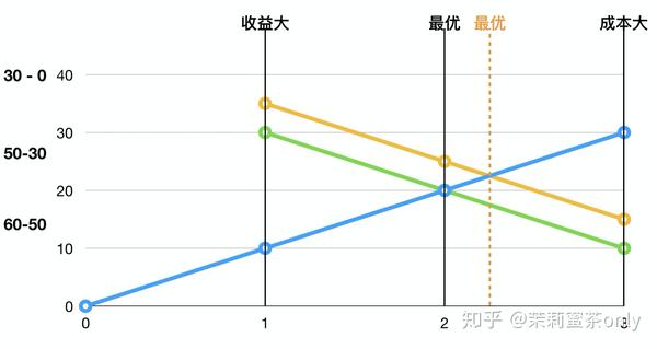 所以,快递员B发现光是依靠减少送快递增加学编程的时间,收益率会衰退,一旦越过最优点,成本持续增加也无法增加收益,这就是边际效益递减。