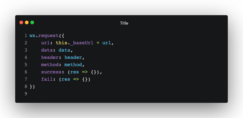 小程序框架自带的网络请求和Ajax请求非常相似都是异步请求,请求参数中需要送入url、method、data、header等参数,还要设置success成功的回调函数和fail失败的回调函数,如下图所示