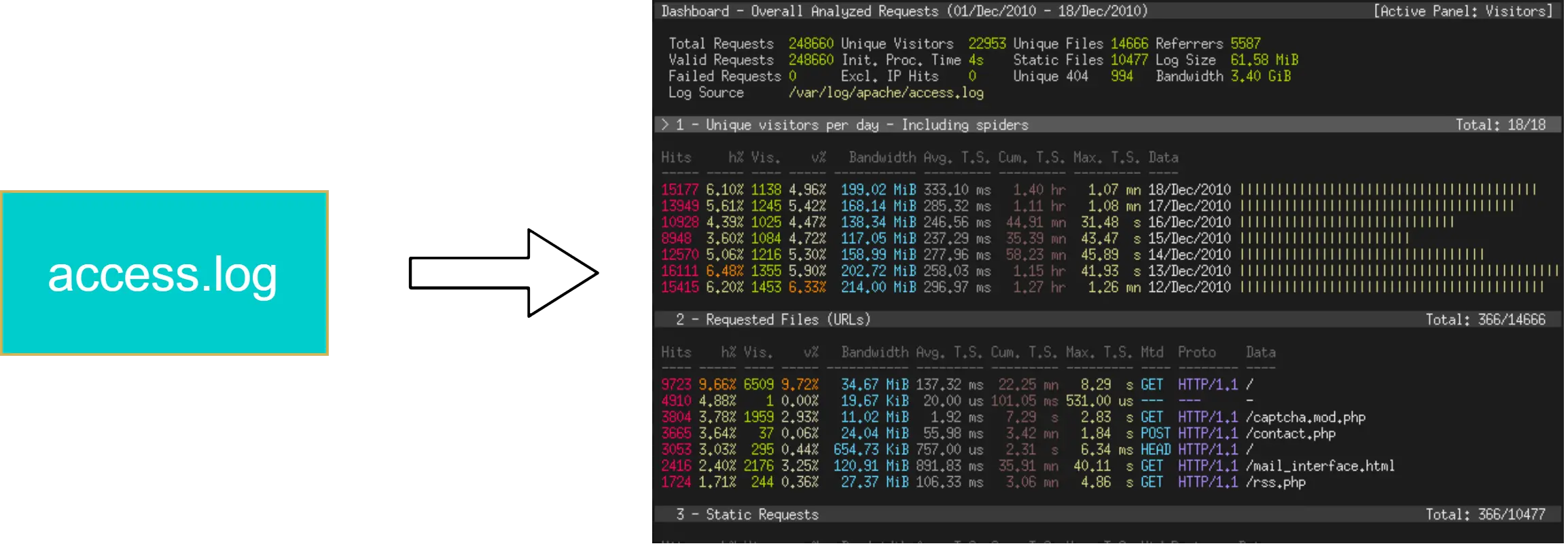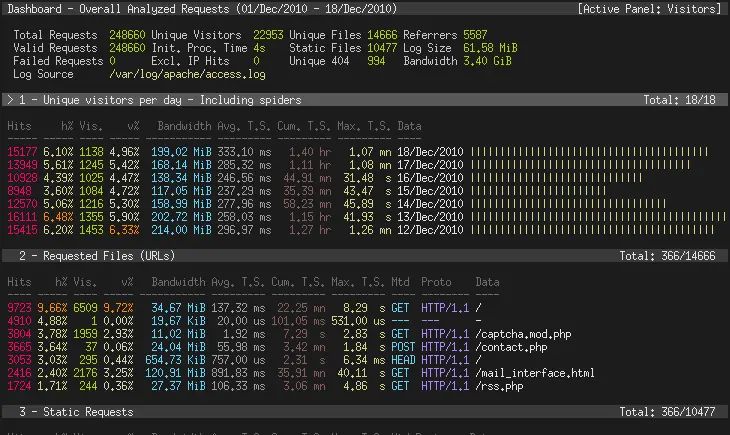 它为需要动态可视化服务器报告的系统管理员提供了快速而有价值的HTTP统计信息。