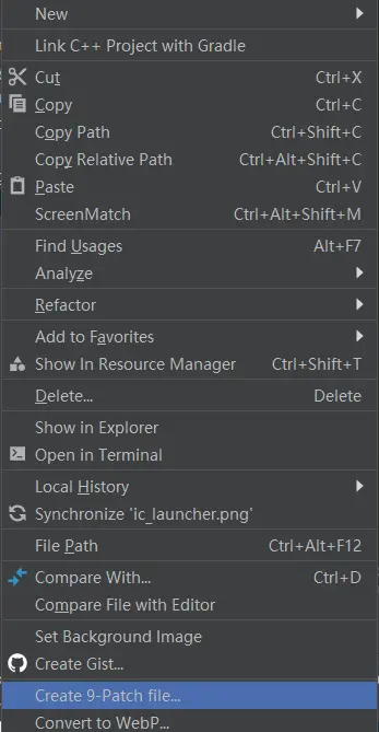 这里我们以ic_launcher为例,右键选择Create 9-Patch file...