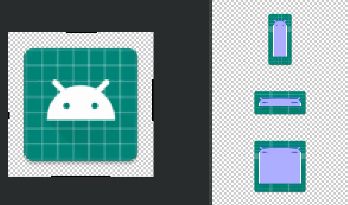 图片的下边和右边确定了内容填充的区域。那什么是内容填充?我们先把下边和右边先画上如图(这里我勾选了Show content。在浏览图里就展示了内容填充区域),我这里设置的填充区域,刚好是这个小机器人的白色区域。这里大家可以看下边和右边的相交区域,即是填充区域: