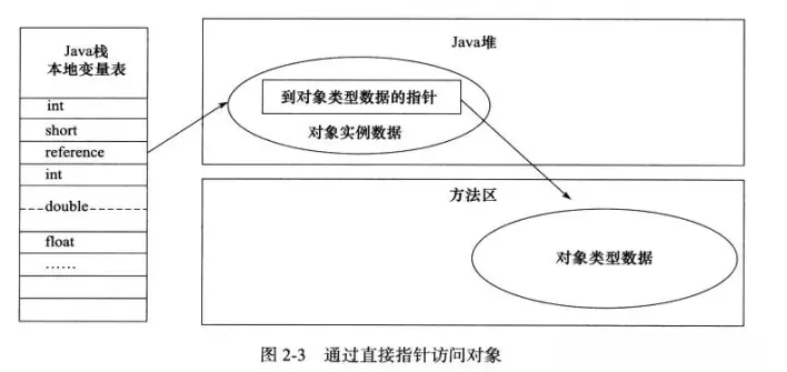- 直接指针访问。Java堆对象的布局中必要考虑如何防止访问类型数据的相关信息,而reference中存储的直接就是对象地址。