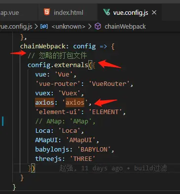 如果在enternal里面写了忽略打包文件,需要在index.html中引入