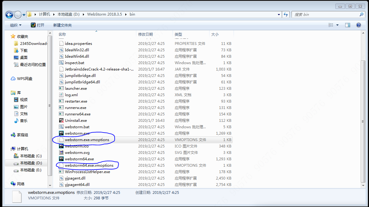 2.找到webstorm.exe.vmoptions和webstorm64.exe.vmoptions,用notepad++(或记事本)打开它们,如图: