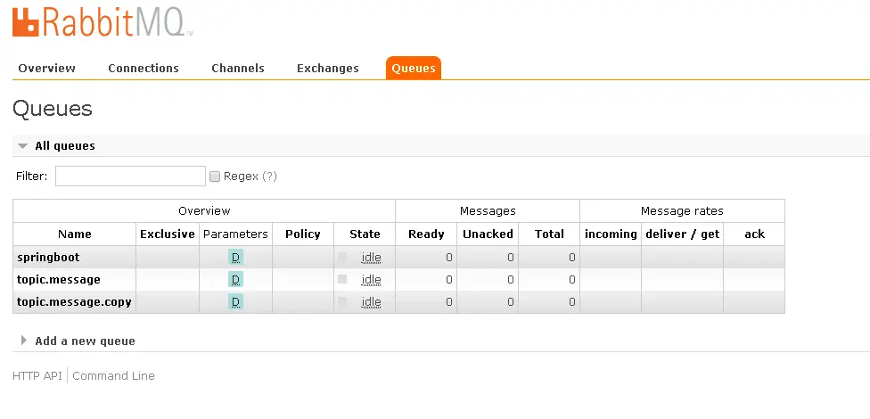 例如: 将queue绑定到某exchange上,需要具有queue的可写权限,以及exchange的可读权限;向exchange发送消息需要具有exchange的可写权限;从queue里取数据需要具有queue的可读权限。