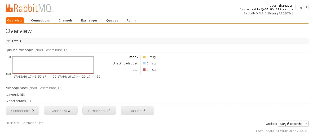 可登陆管理控制台(启用management plugin的情况下),可查看所有的信息,并且可以对用户,策略(policy)进行操作。