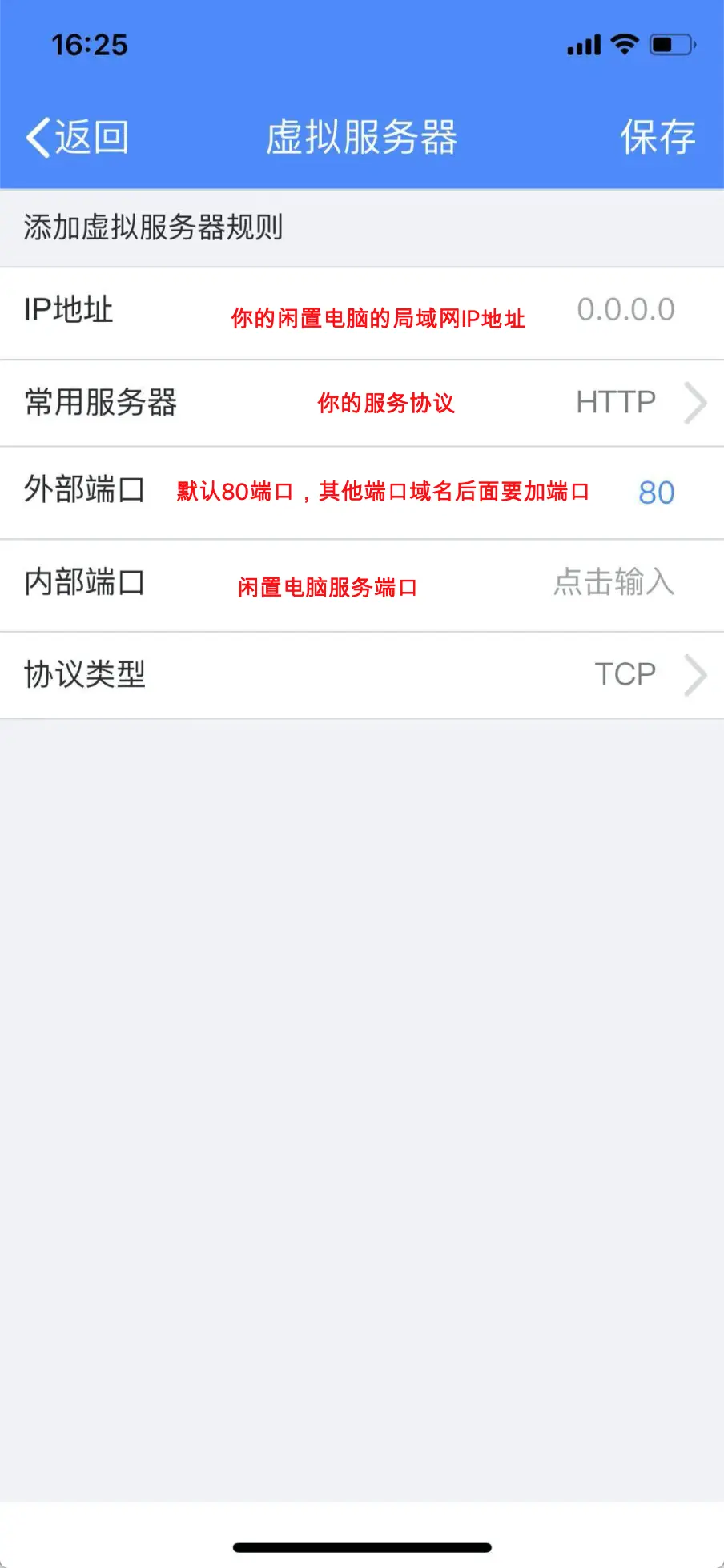 - 路由器配置转发规则,根据你的服务协议,服务的端口配置就可以了
