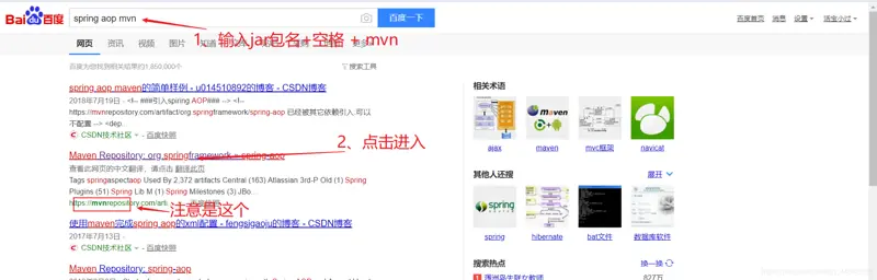 具体以找spring aop jar包为例子:
